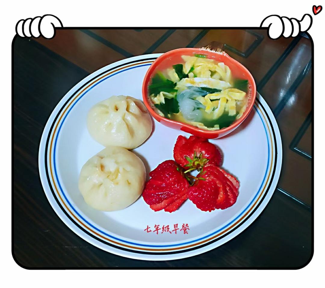 酱肉包/鸡蛋汤/草莓🍓