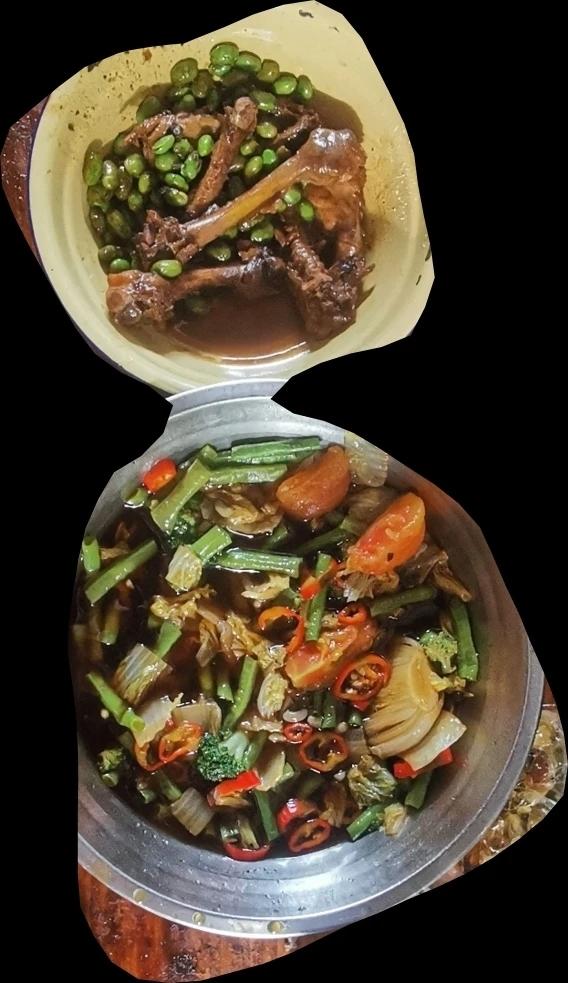 昨天的鸡骨烧黄豆&凉菜捞&配了黑苦荞茶