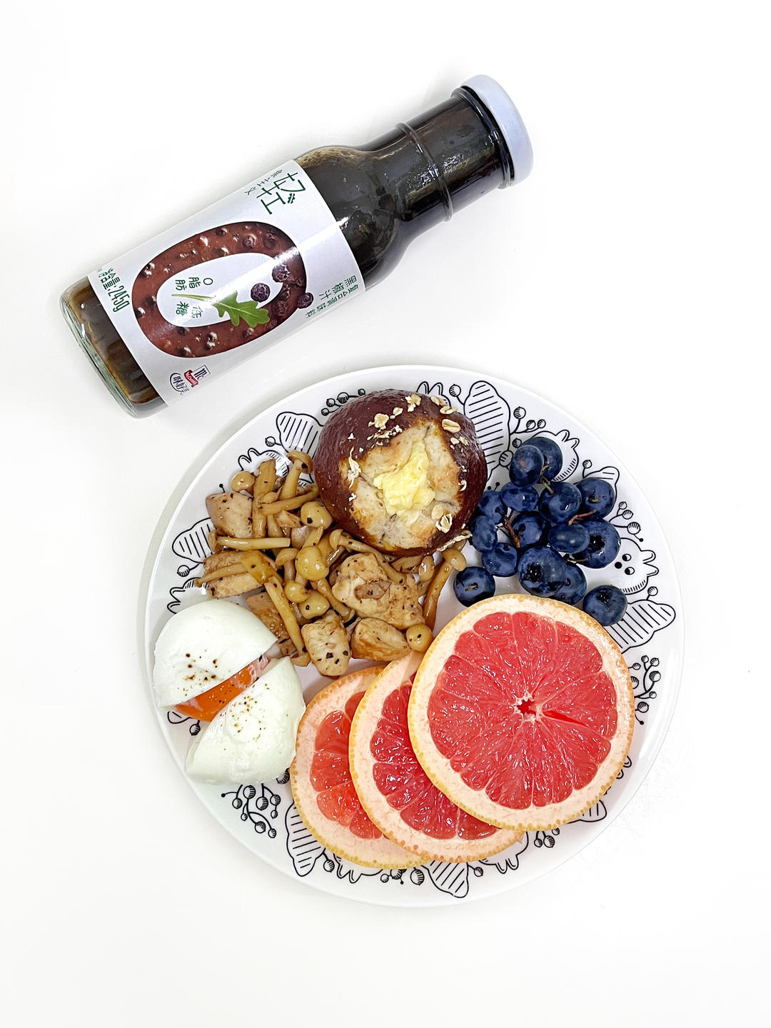 黑椒白玉菇鸡胸肉|碱水球|西柚|溏心蛋