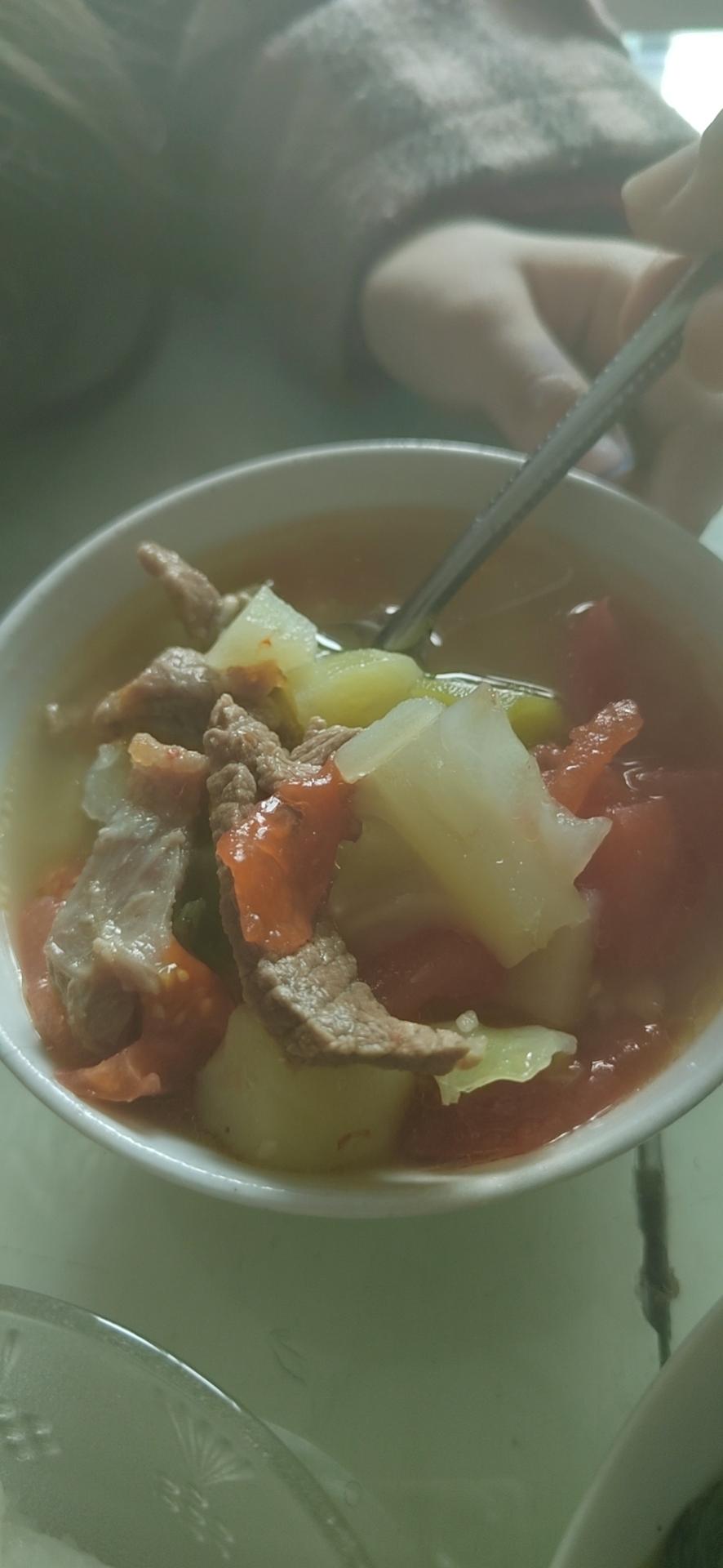 我材料放的很足,满满的汤少料多,汤很清甜,我放了点白胡椒粉,很好喝,我八岁多的女儿,米饭一口没吃,白色的碗吃了两碗这个汤。