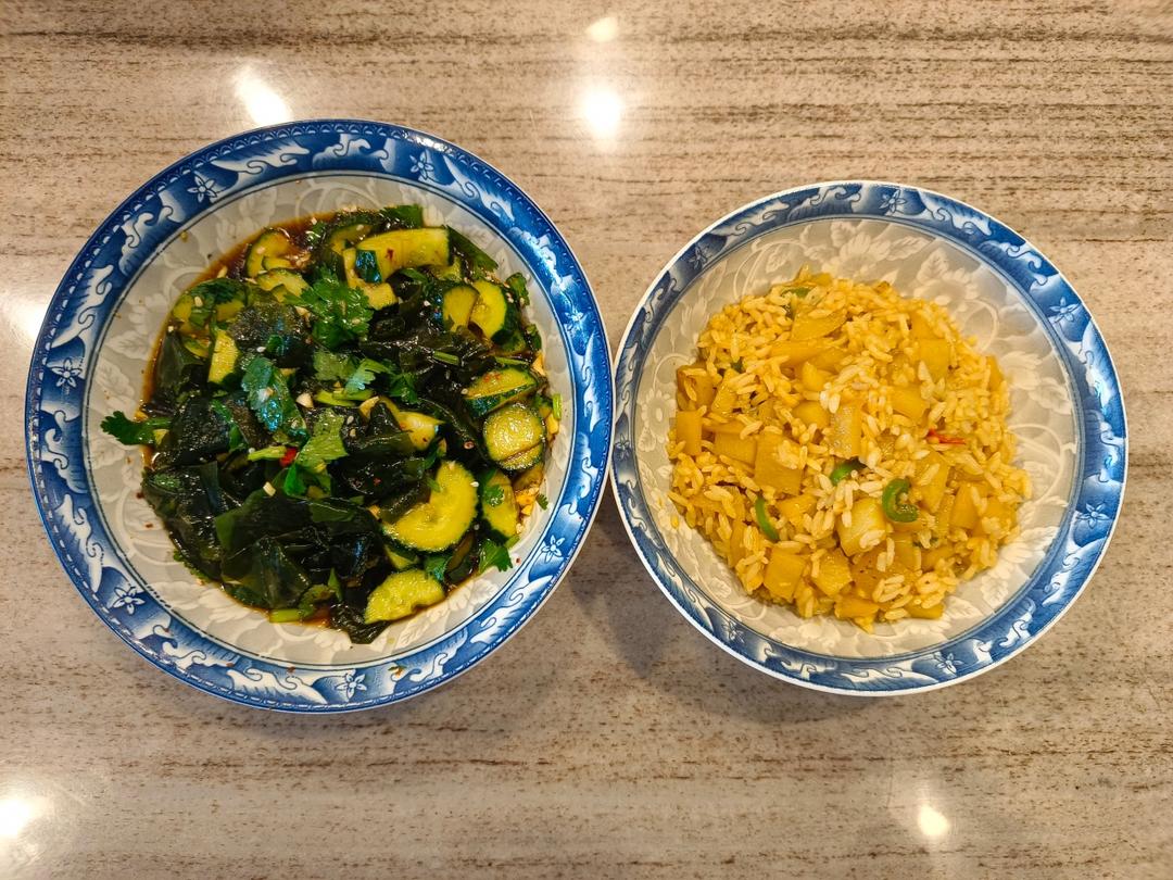 土豆烩饭 裙带菜黄瓜凉拌