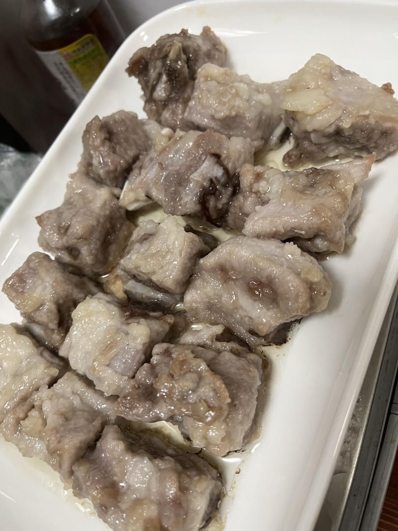 给小朋友蒸的排骨,用盐和葱姜简单腌制一个小时后上锅蒸了半个小时,小朋友吃的很满意