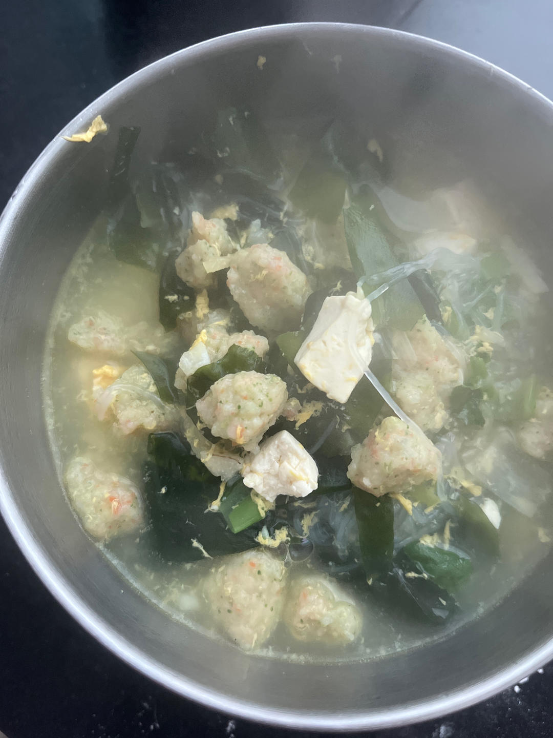 裙带菜虾丸汤,孩子爱吃