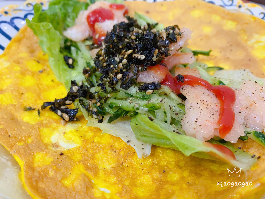 早餐:鸡蛋虾滑手抓饼,橘子,牛奶