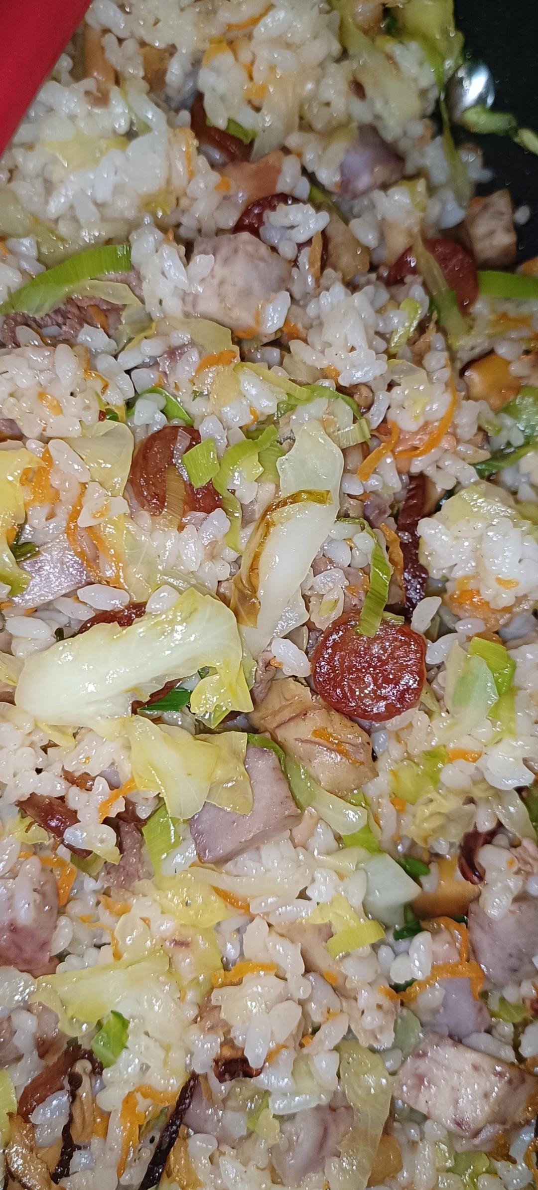 学着抖音本地婆婆的做法,做了一次芋头炒饭,下了香菇.虾米.腊肠.鱿鱼干丝,胡萝卜.包菜,猪肉,还有炸好的芋头,成品真的特别香,虽然我在减肥,我都忍不住吃了几口。可是我这个千里马遇不上伯乐。今天老公不在家吃,小的中午跑去他们奶奶家吃,儿子吃了两口说不吃芋头(前阵子做拔丝芋头,明明他吃的最多。),我给他挑出来。晚饭加热给他们吃,怕芋头不好吃,费心力挑了个七七八八。小儿子吃到一些,一直说很好吃,妈妈怎么才几粒?我的心破碎一地!等哪天我有钱了,一定顾个煮饭阿姨。我再也不想做饭了!心累#晚餐•2023年5月3日#