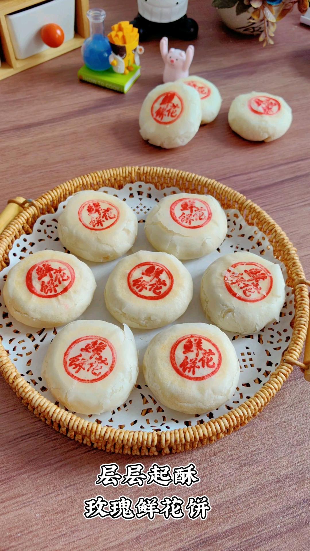 自制玫瑰鲜花饼外企酥的掉渣里面馅料甜而不腻