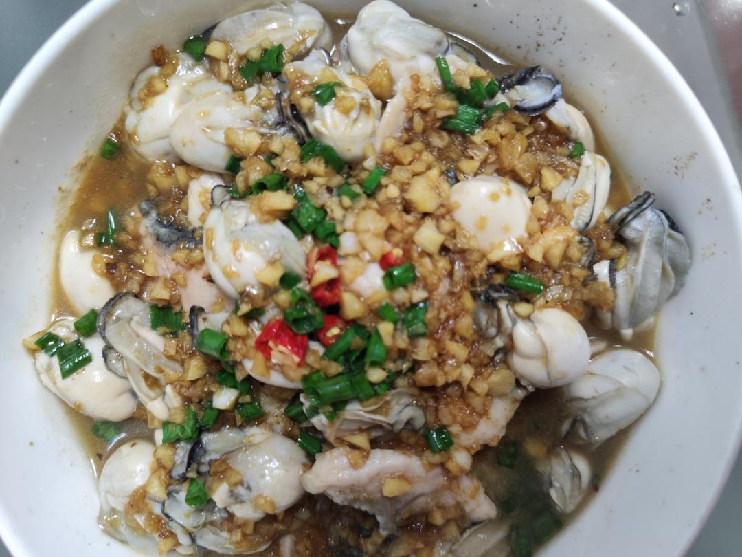 那啥炒蒜末时候一定开小火,不然焦了不知所措的我加水了,没有得到楼主的精髓,下次有机会再试试,今天加了生蚝肉口感不错