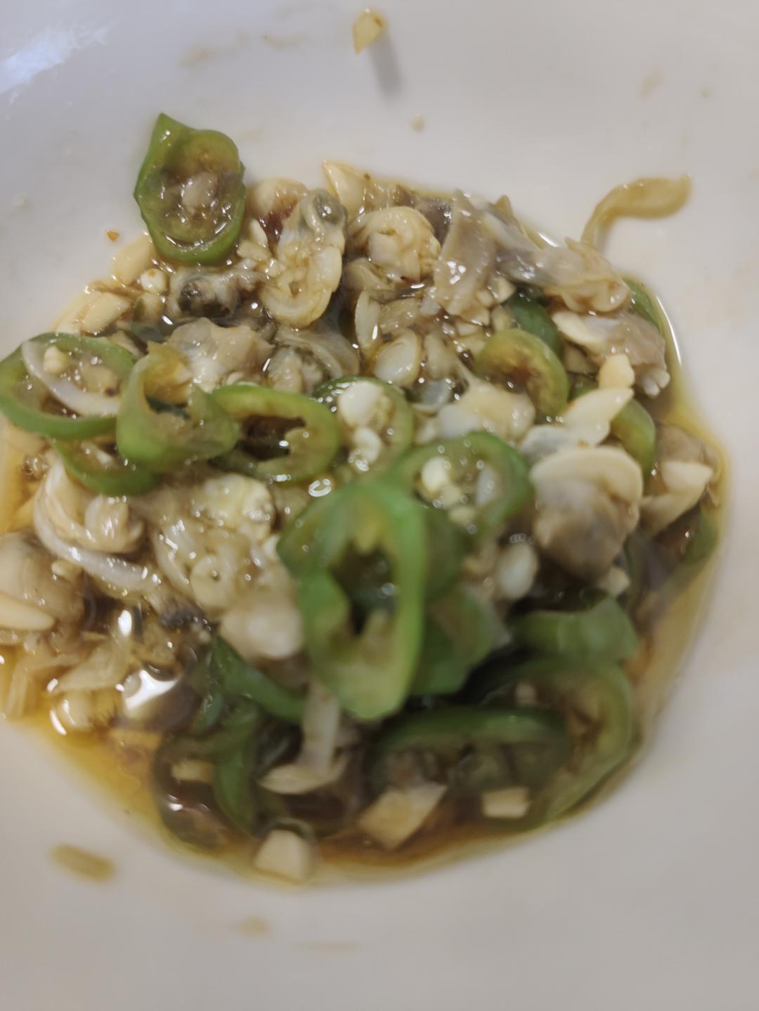 拌秋葵的汤汁直接再拌蛤蜊