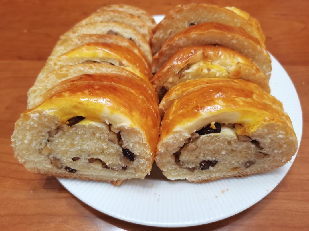 燕子幽兰 做过 俄罗斯果仁大列巴 二刷此方,这次表面刷了蛋黄液,烤了十分钟盖了锡纸。165度,45分钟,烤得刚刚好。因为面粉不够了,用料减半制作,而且放的椰子油,口味偏松软,不似买的大列巴那么干硬,总之还是特别好吃的,以后还会再做。#晚餐•2023年6月24日# 2023-06-24