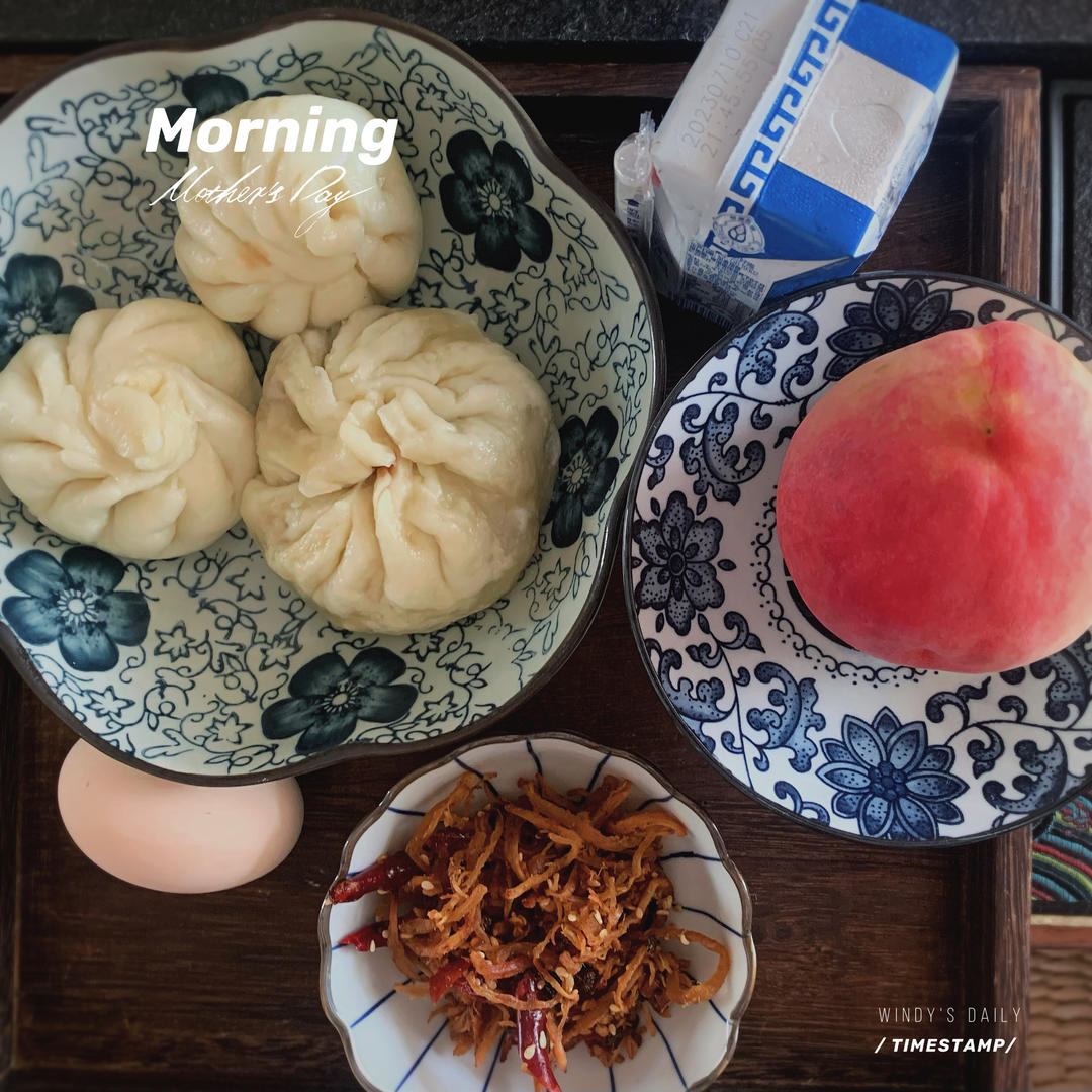周一,早安☕️今天是王先生溜的🐩,睡懒觉的我起床后的早餐,蒸肉包,鸡蛋,鸡肉丝,酸奶,桃子,美好的假期慢生活,生活嘛!适合自己的就是最好的📷#早餐•2023年7月31日#