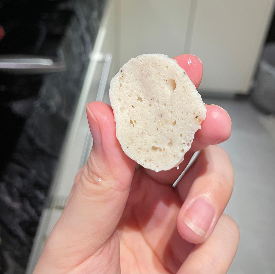 弹力满分,味道满分太好吃了!放了3.5g黑胡椒粉,3.5g白胡椒粉,微辣。770g成品40颗丸子