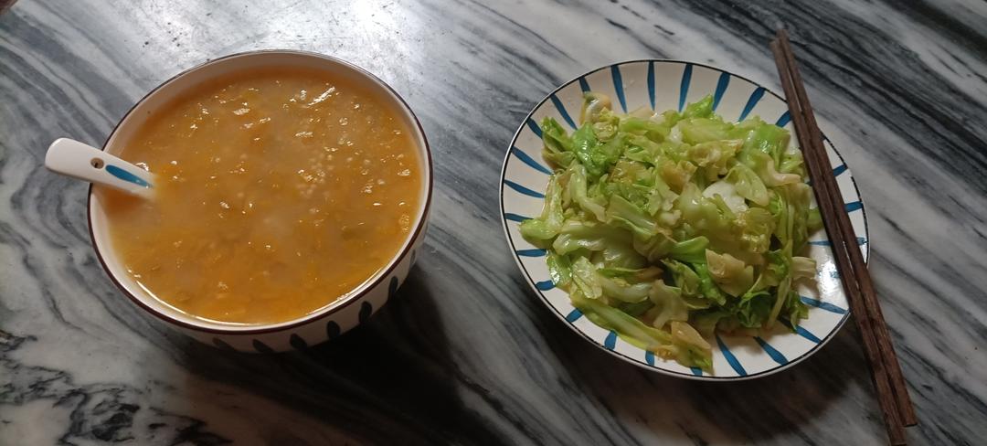 好好吃饭系列之南瓜小米粥+炒包菜!