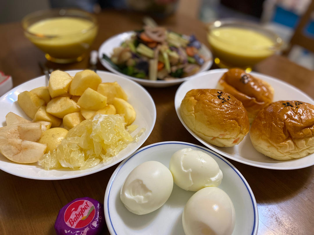 感觉每天早餐吃的都差不多,拍出来的照片也没什么太多区别😂 今天早上爸爸新买回来的鸡蛋,煮完了不好剥皮,坑坑洼洼的