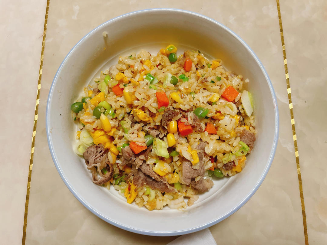 小图图 做过 晚餐•2023年11月5日 天呐太好吃了,而且颜值好高啊。买的盒马9.9的黄金蛋炒饭成品,再自己加上大葱花、胡萝卜粒、玉米粒、青豆、肥牛。真的太好吃了,而且比我自己煮的米饭要硬挺很多。#晚餐•2023年11月5日# 2023-11-05