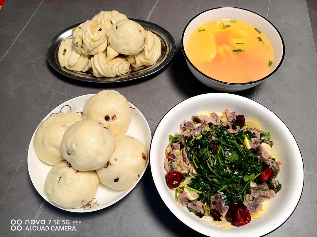 今天自己做了馒头和花卷,做了柠檬鸭胗和蛋汤。
