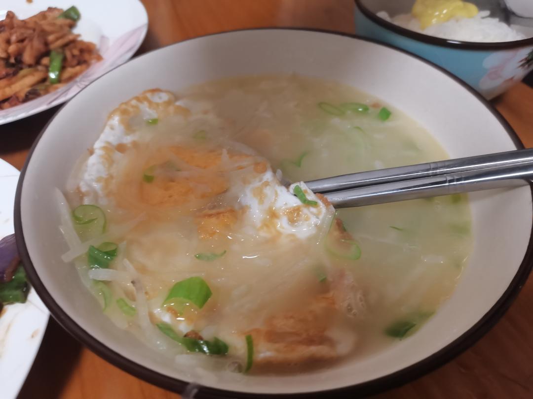 奶白鲜香的萝卜丝煎蛋汤