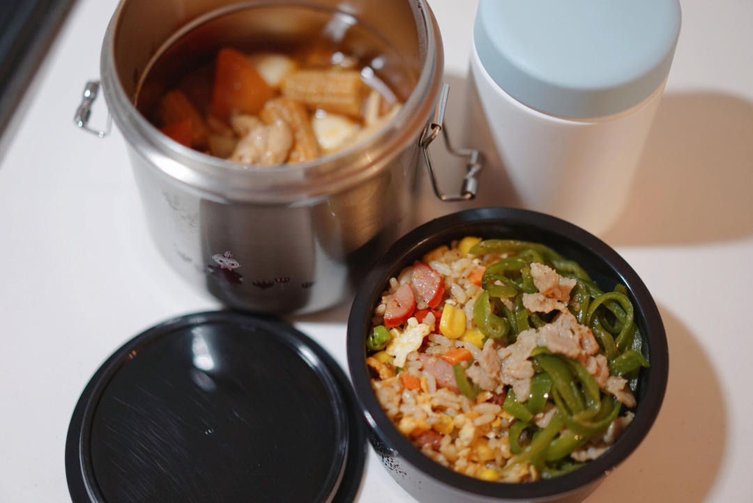 悠苒食光 做过 午餐•2023年11月16日 早~带饭日常天冷了还得吃热乎的正常带个饭,今天有鸡公煲、青椒肉丝、什锦蛋炒饭,咖喱牛肉汤,基本都带点辣的(家有喜辣的孩子)#午餐•2023年11月16日# 2023-11-16