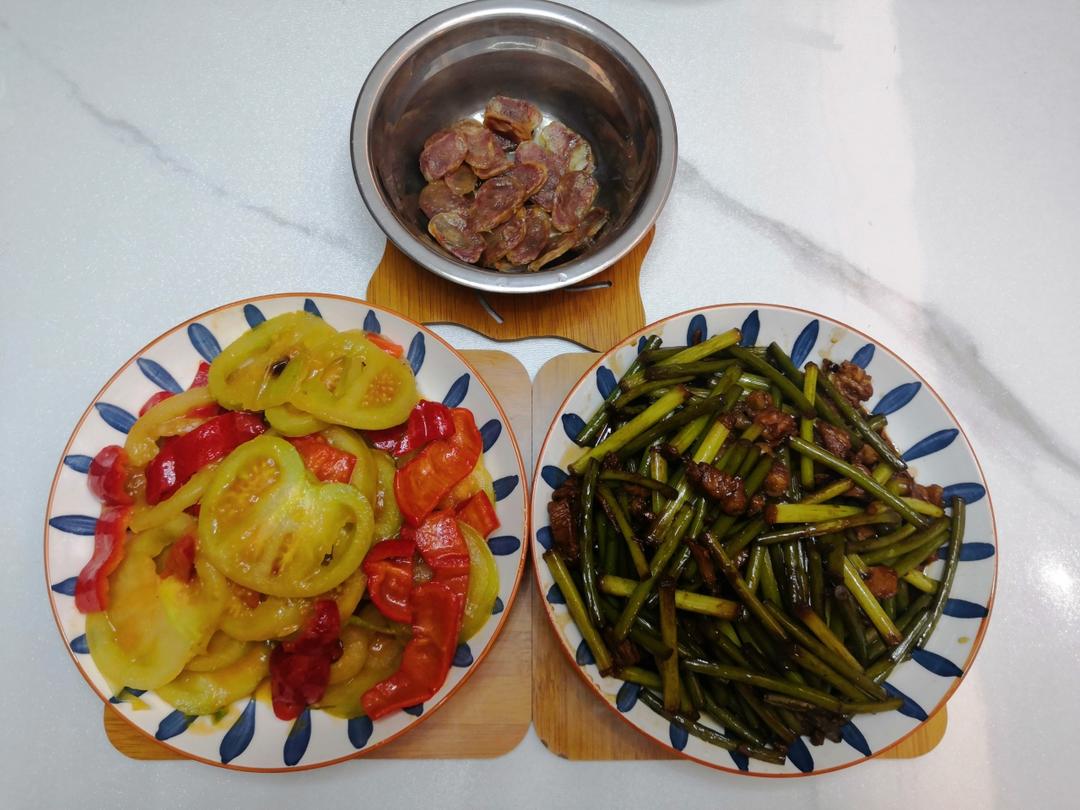 小程童鞋第一次烧蒜苗烧肉味道很赞👍