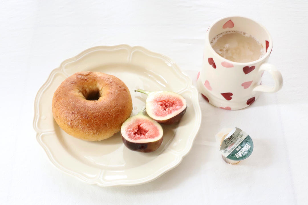 D1518 早餐:肉桂提子贝果+无花果+咖啡牛奶