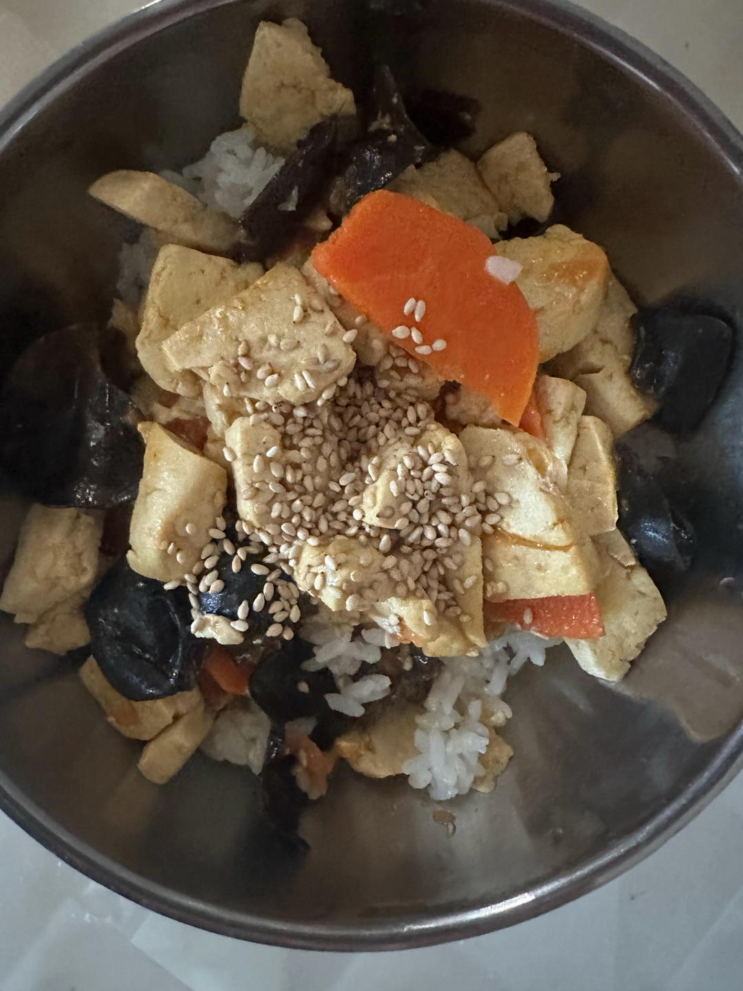 加了胡萝卜🥕和芝麻的🍅木耳炒豆腐😄