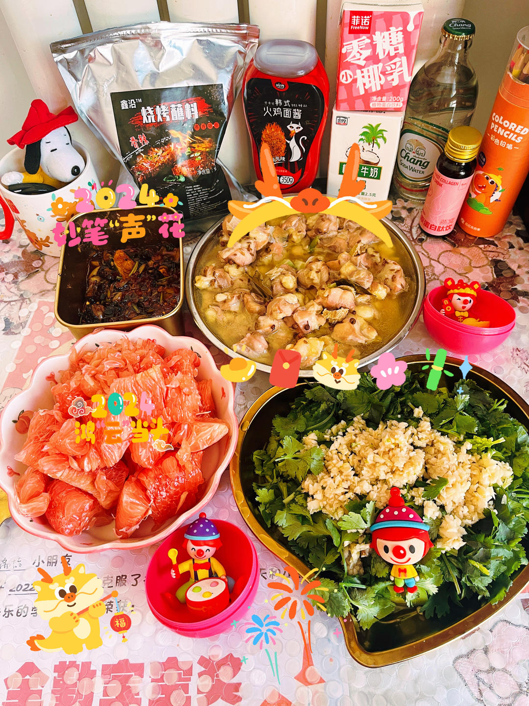 🍋蒸了鸡脆骨🧄香菜配烧烤蘸料+🌶️韩式辣酱…吃🉐不亦乐乎啊…准备的❤️红心柚子炫多了…吃完好饱好撑收拾家…出门🚪训练…到🏟️球馆没啥事终于喘口气…😴困🉐睁不开眼了…