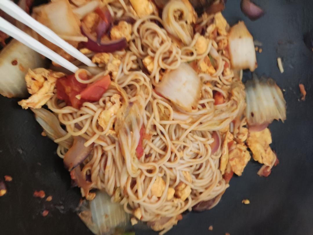 炒面:面条多了料少了,临出锅香油撒多了,面没有过凉水坨在一起了,下次生抽和盐要加多一点