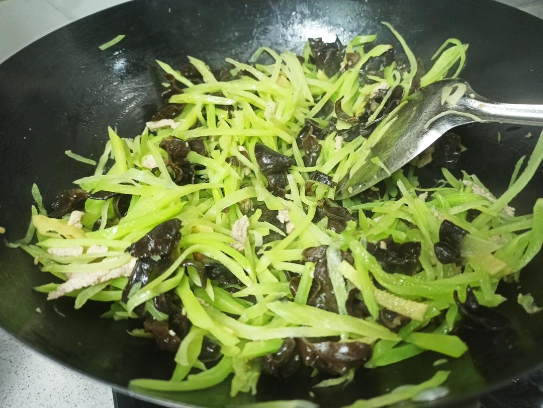 莴笋丝木耳炒肉丝 和未入镜的的青菜粉丝汤