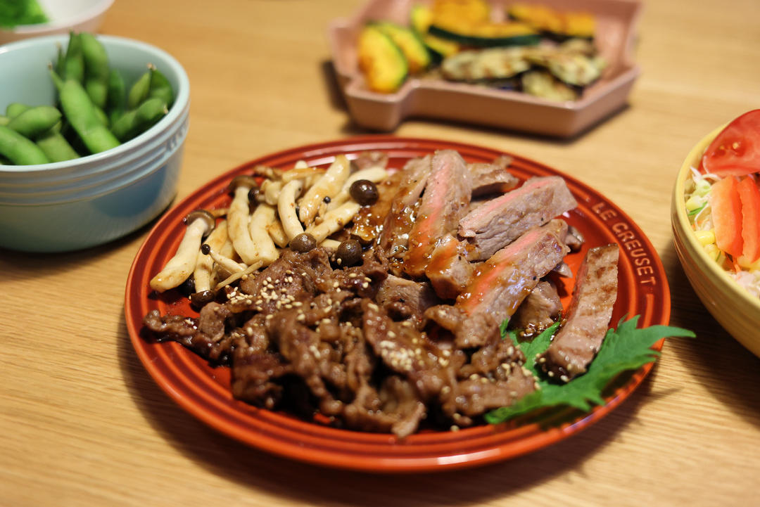 顺便煎了南瓜茄子和黄油蘑菇