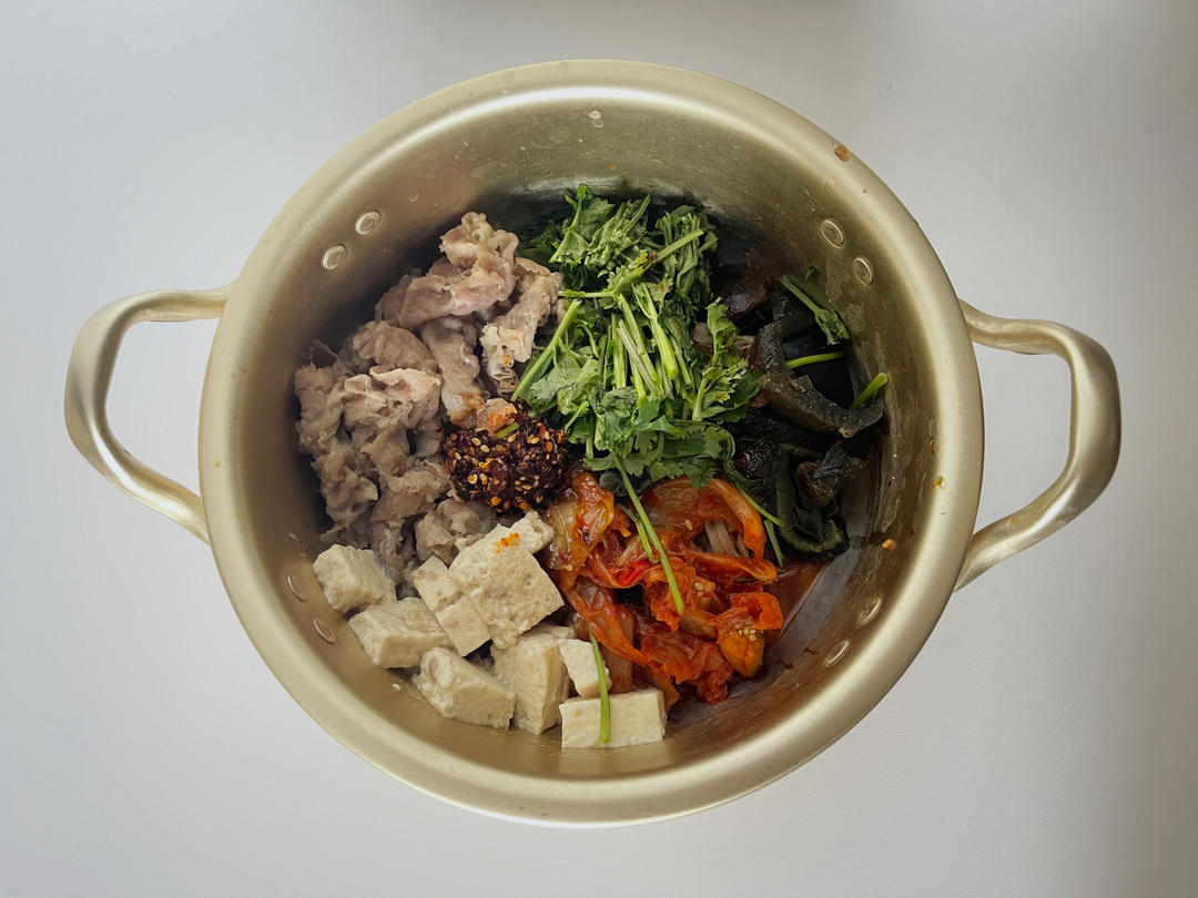 泡菜+冻豆腐+肥牛+香菜+皮蛋