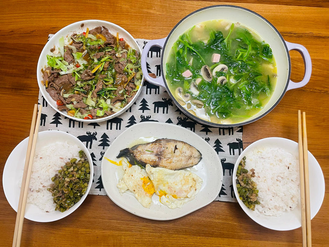 豇豆肉沫、煎鳕鱼🐟、