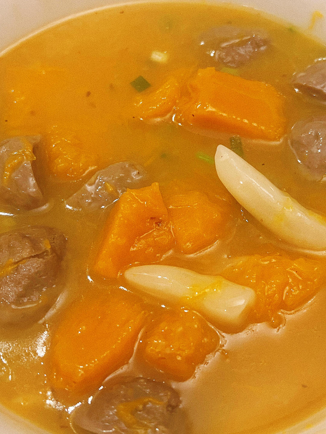 牛肉丸南瓜面疙瘩汤,孜然羊肉南瓜饭,蒜香烤鸡腿