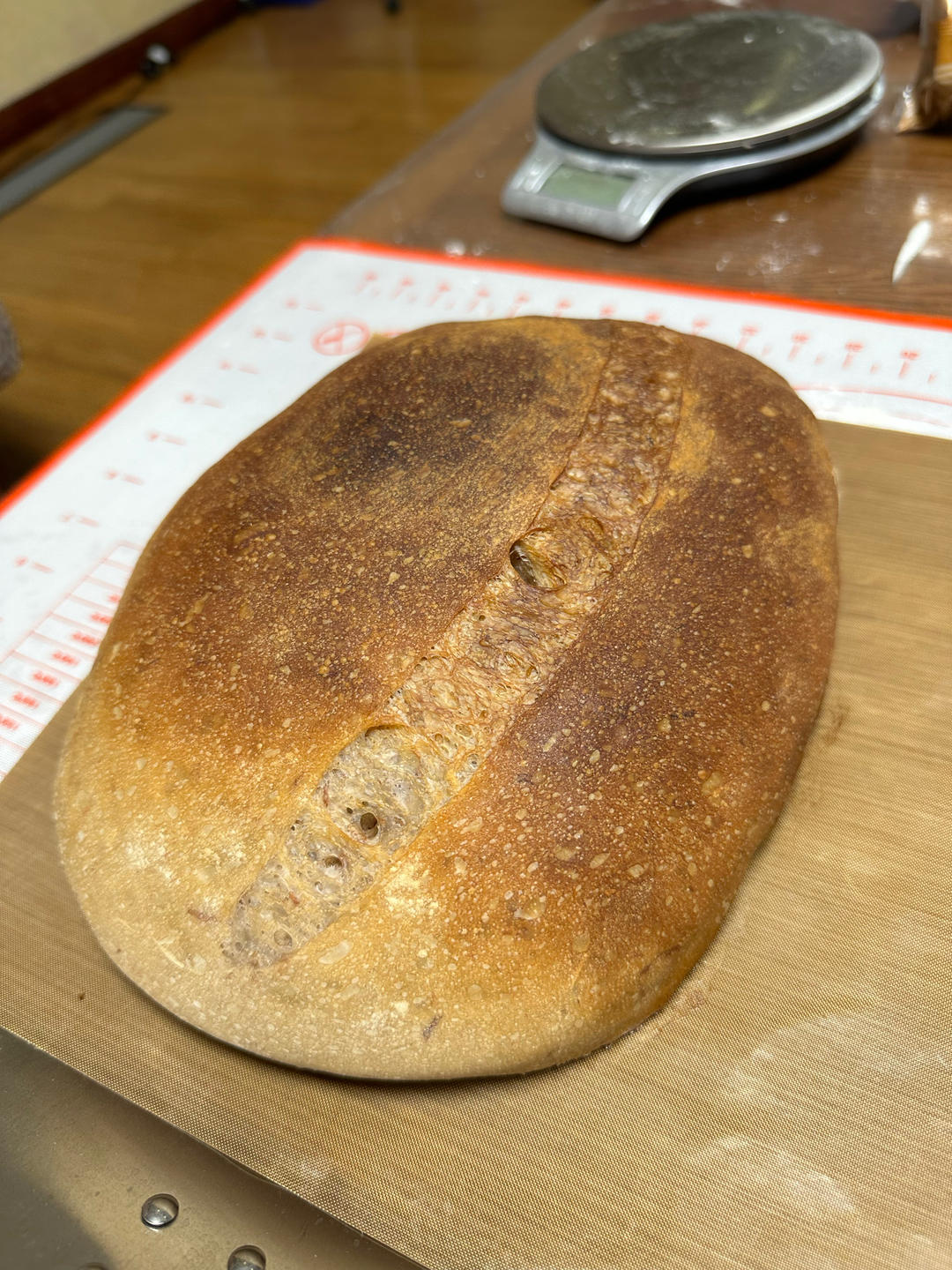 感觉烤成恰巴塔了出缸温度太高 粘手粘到怀疑人生🤣第一次用鲁邦种撸包 记录!加了60g玫瑰酱 香香的