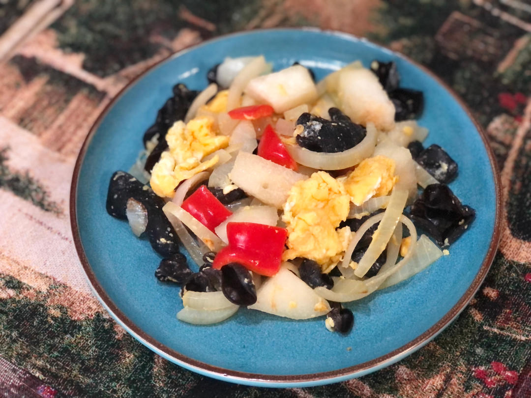 木耳洋葱秋月梨炒鸡蛋