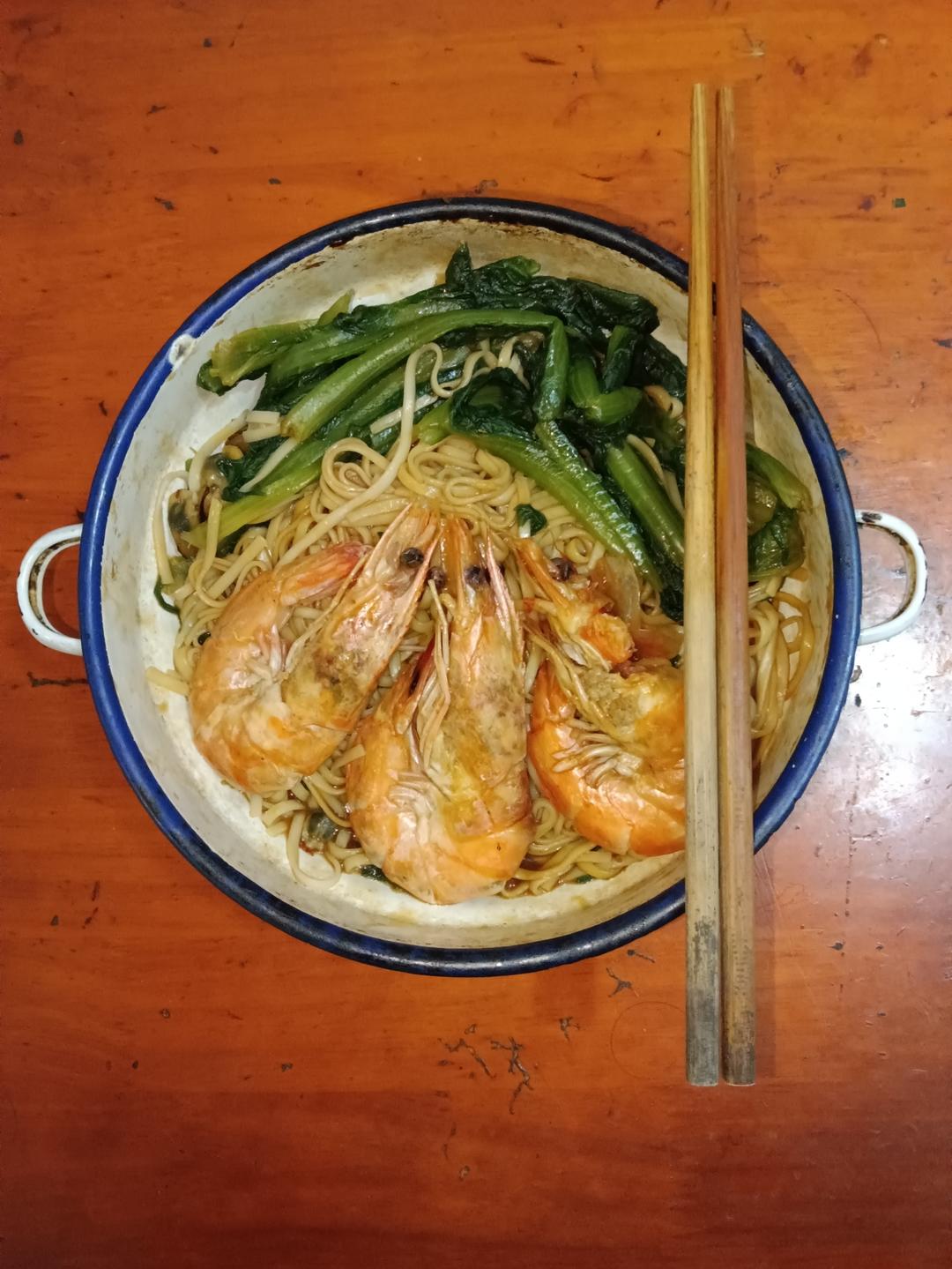 海虾海螺肉青菜葱油拌面。好味😋