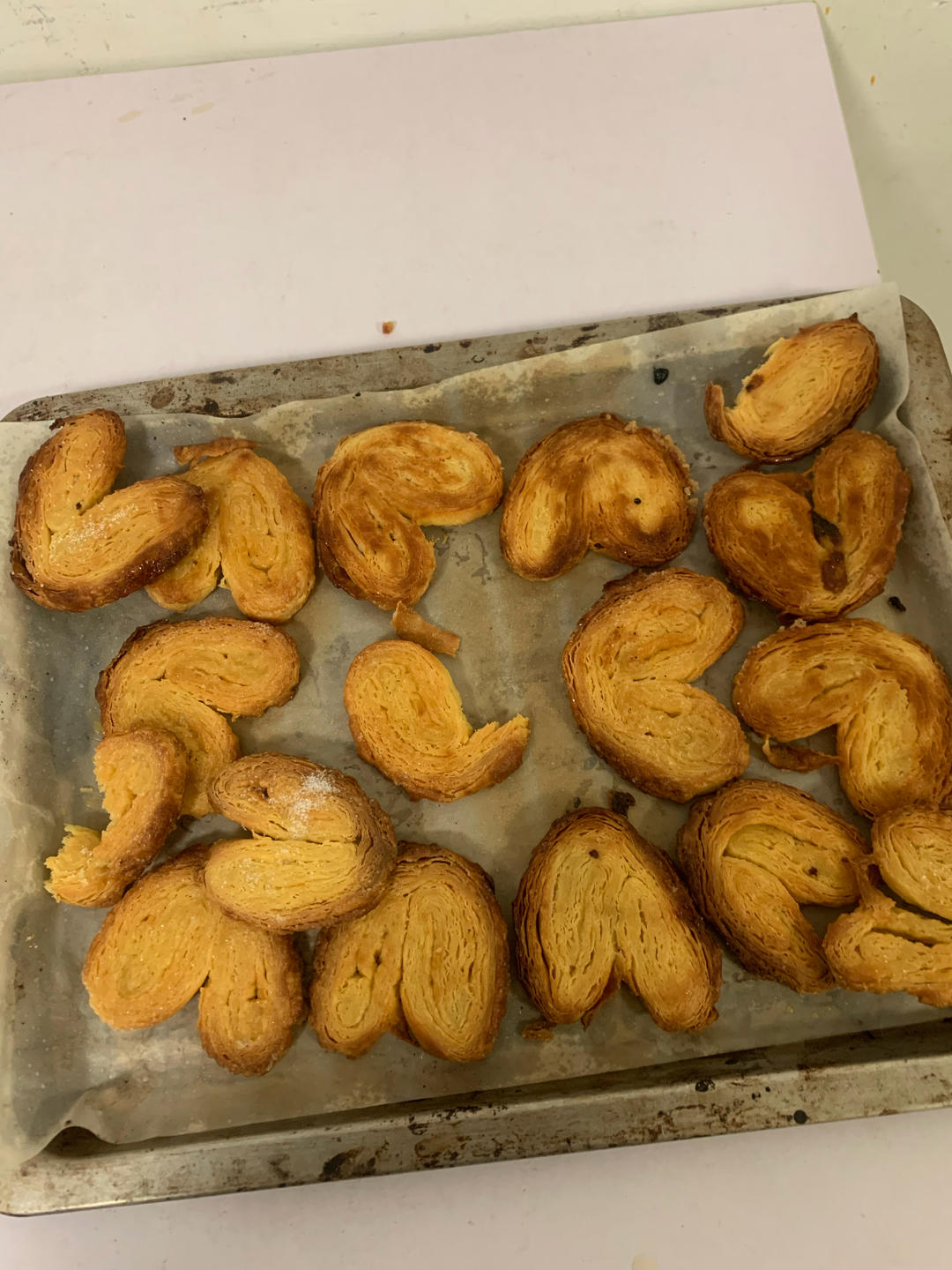 看着还可以,但其实破皮特别严重,好在天气冷,黄油是固体的。和买的比,奶香味差点,生面粉味浓,没有开酥的部分有点黏,不过第一次做,已经很不错了
