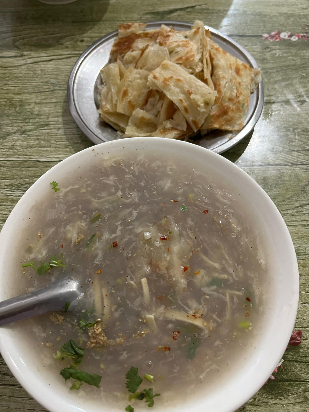 当地版的胡辣汤,油饼。