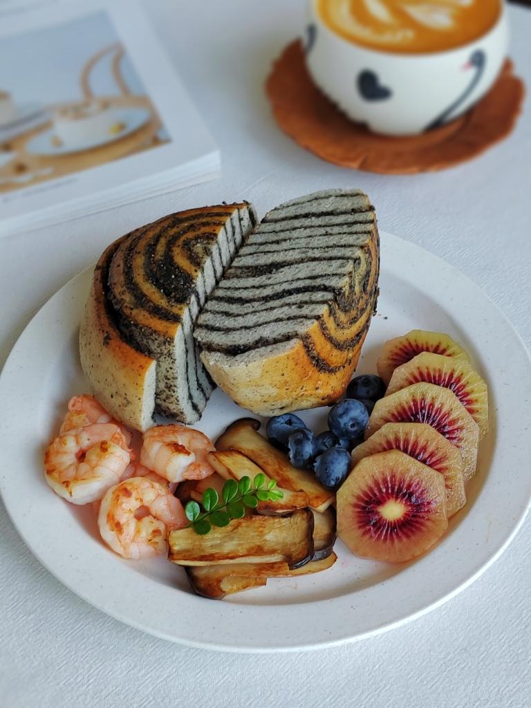 浅夏的淡雅 做过 每天都要好好吃早餐🍀 早餐𓎩𓌉𓇋 :☆黑芝麻卷☆煎虾仁☆煎杏鲍菇☆猕猴桃🥝☆蓝莓🫐☆咖啡☕🍭最近爱上吃各种卷卷(黑芝麻卷、肉桂卷、开心果卷、抹茶卷)#每天都要好好吃早餐系列# #早餐•2025年5月18日# 2025-05-18