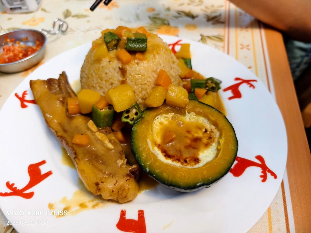 小希小小希妈 做过 晚餐•2025年8月22日 #晚餐•2025年8月22日# #姐姐妹妹的快乐小食光# 下午带孩子们参加了社区和银行联合的沙龙活动,每人做了一串手工葡萄皂,姐姐还加了渐变色。晚餐咖喱羊排盖浇饭,贝贝瓜蒸蛋盅,爸爸的份量比较大,我的是鸡胸丸子又加了黄瓜。晚上四个人一起骑了一大圈自行车,拍了一张美美的星空 08-23