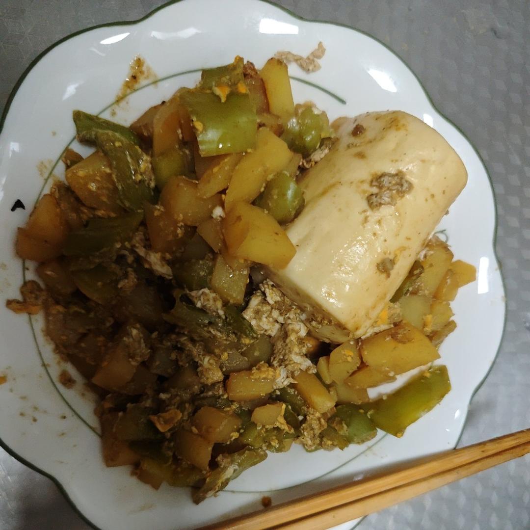 辣椒炒土豆配馒头,好香!