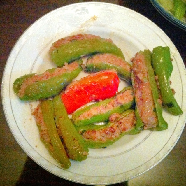 Naxtsu酱 做过 虎皮尖椒酿肉 食物摆好,调单反数据,食物和一起吃饭的人的心早就凉了。。。这很违背我的初衷啊!!还是比较注重后期比较好!家里种的青椒,不知道为什么有一条是红的,好赞哦~!! 2012-09-18