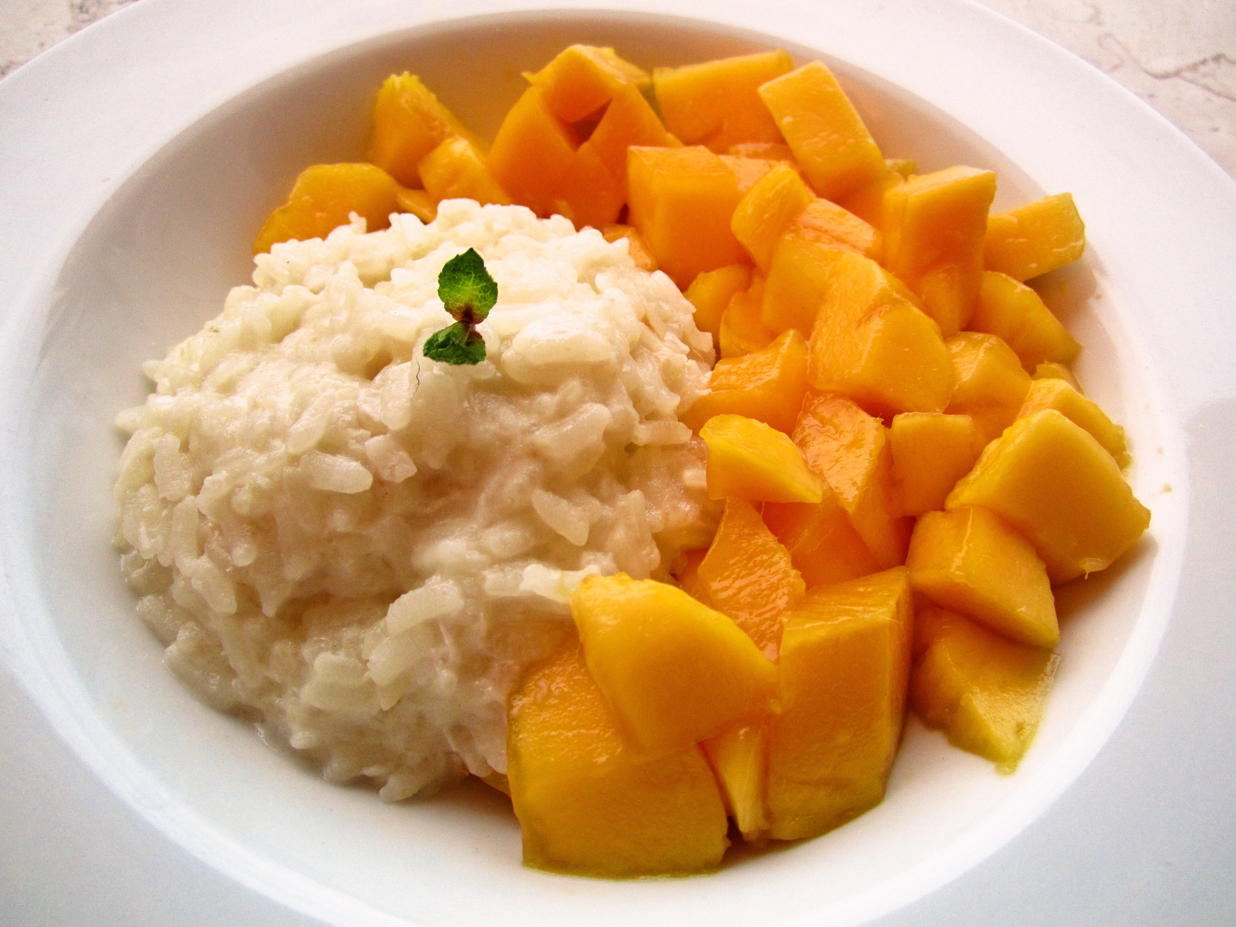 潭秋 做过 泰式芒果糯米饭 这个是以前在泰国餐厅吃到的饭后甜点,没想到在这里找到做法,其实做起来蛮简单的。真的是非常好味!!!不得不说,芒果和椰汁饭真是太搭调了,糯米在椰汁里多煮一会会吸饱味道。最后的一点薄荷一定不要少,绝对画龙点睛。 2011-12-30
