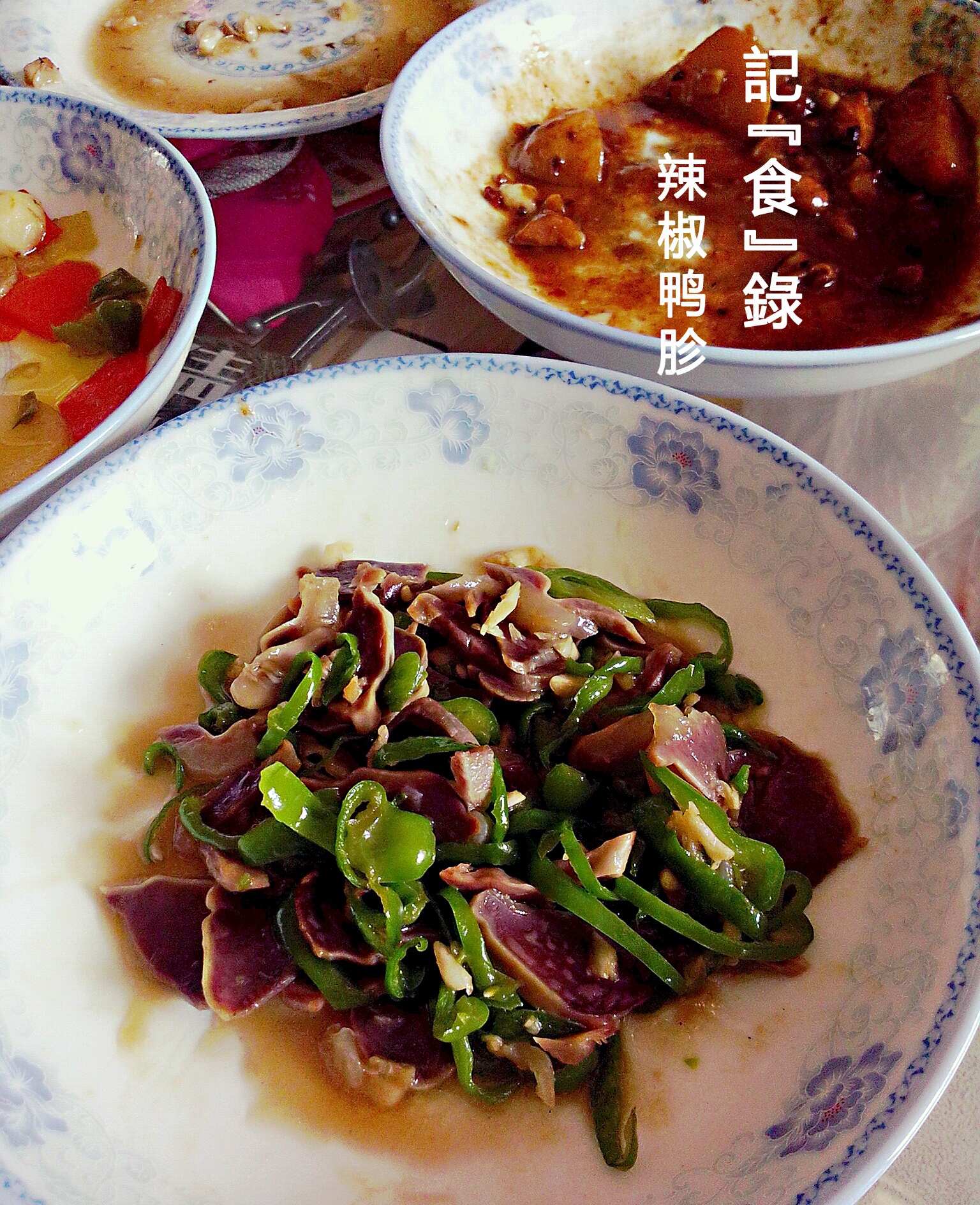不是按照这个菜谱做的,也没找到我这种做法的,就传这里啦。鸭胗是南京盐水鸭店里买的,熟食很好料理,加一点蒜末和青椒,小炒一盘,又快又好~