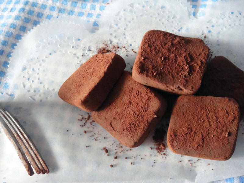 童梦 做过 小嶋老师的生巧克力 生巧克力 反正看见加了可可粉的我都叫松露巧克力,但是这个方子还是尊重原叫法吧,是一款吃起来刚开始觉得很单薄但又耐吃的巧克力。它给人的感觉就像身体很干燥时捧起山涧的泉水啜饮,清冽的泉水进入口中滑过喉咙的清凉感。 2012-12-13