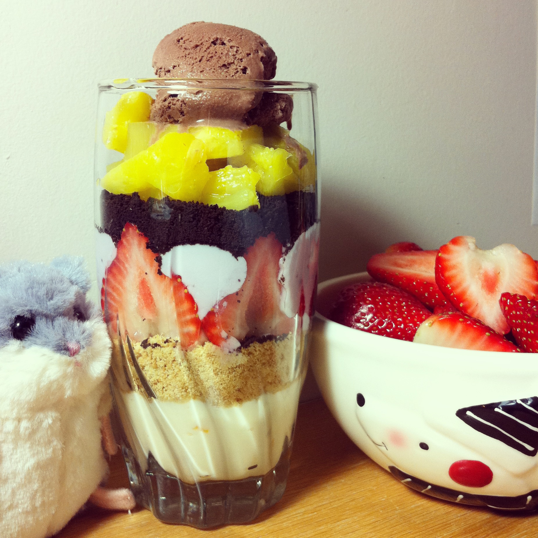 黄桃酸奶+消化饼干+草莓+蓝莓酸奶+奥利奥+菠萝+巧克力冰淇淋~