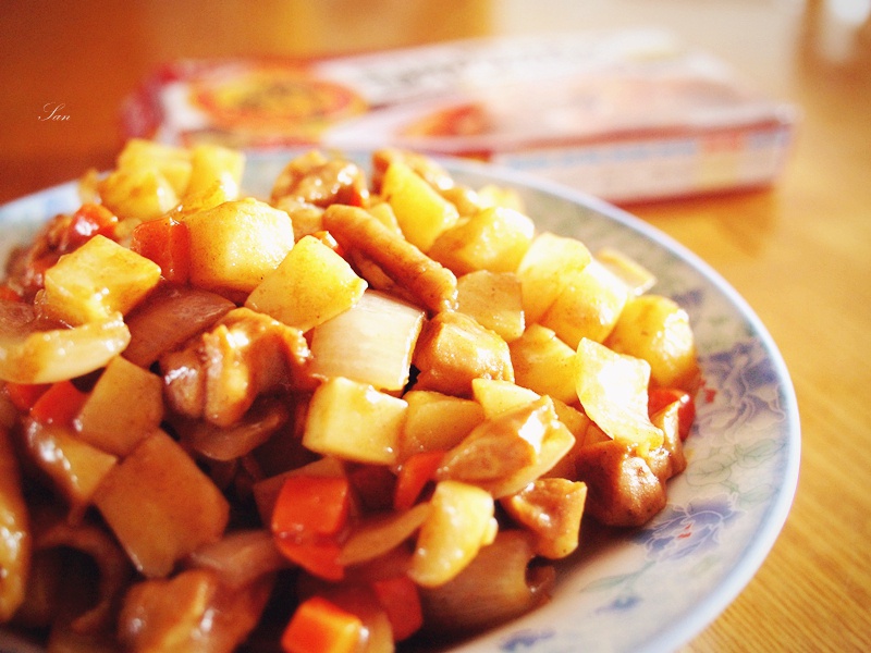 33君。 做过 咖喱饭 终于把哥哥从霓虹带回来的咖喱用掉啦 因为包装上表示辛味順位达到了最高等级 怕辣 只放了一小块(貌似放少了)……浇到米饭上就是咖喱饭了嘛~全家同心 其利断金XD 2013-01-26