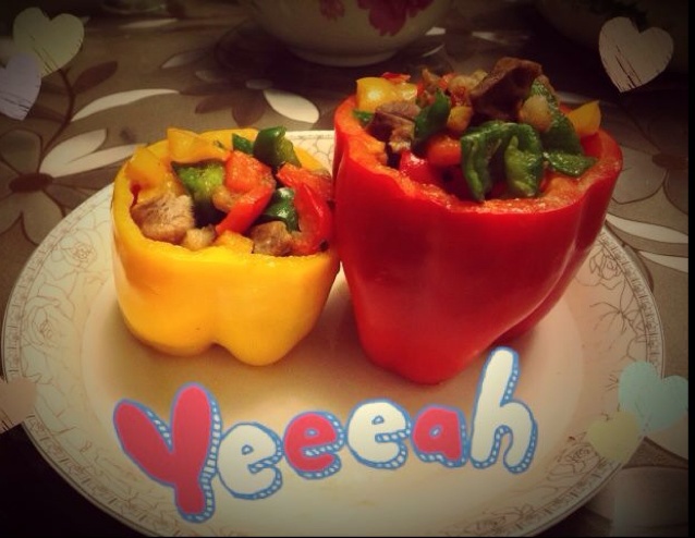 彩椒酿肉有木有、、、作后用微波炉烧烤功能加热、美味