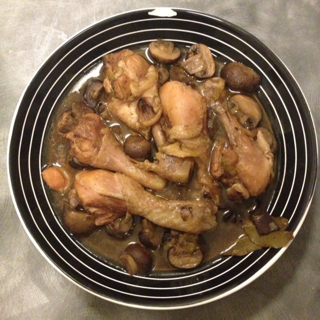 王呀咿嘿 做过 小鸡炖蘑菇 这才是今晚的main course...没有大粉条子也没用龙口粉丝替代。。。完全腐国特色食材造就的的鸡腿炖鲜蘑。。。话说我好像带了东北臻蘑还一次没用过呢。。。 2013-03-16