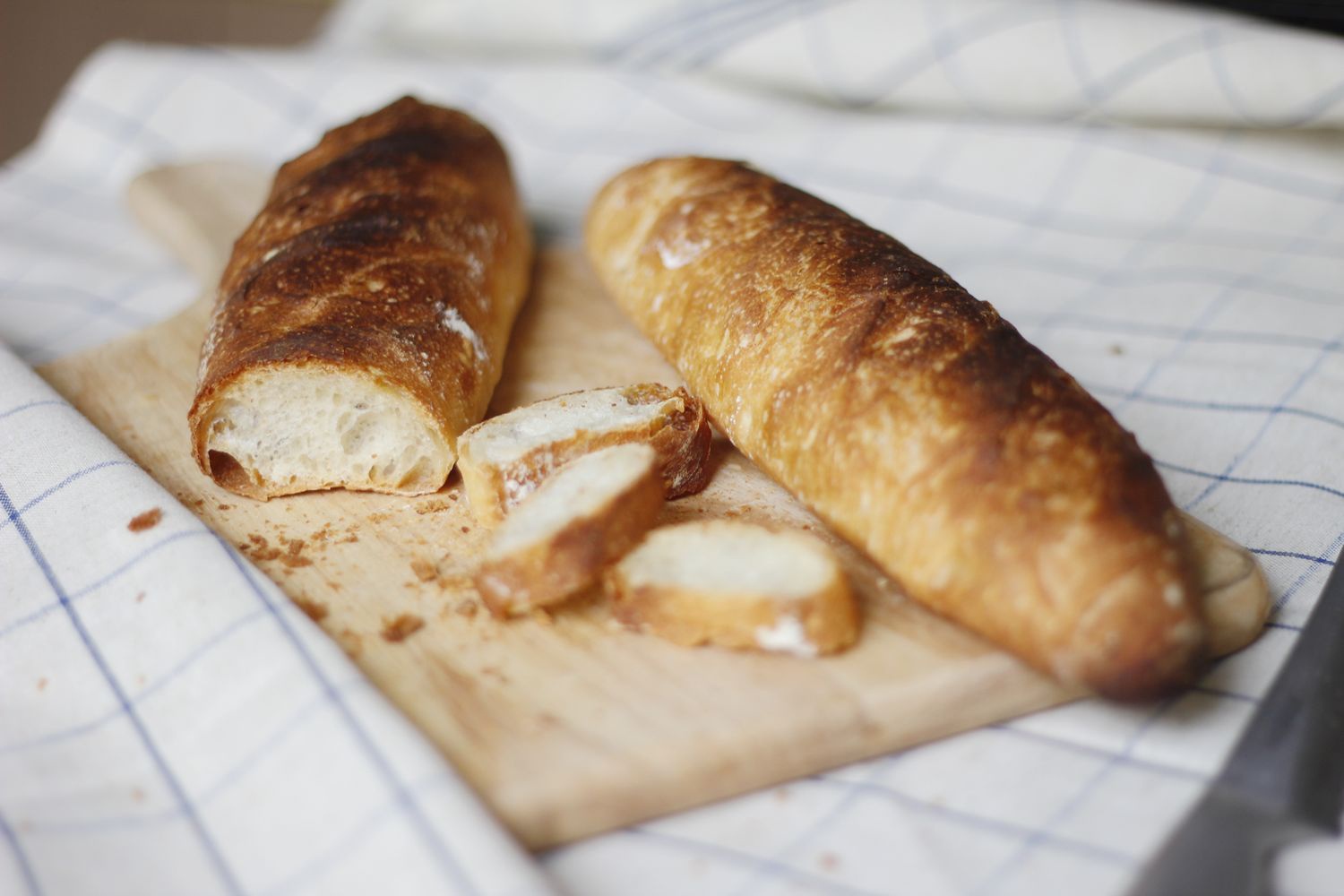 黄长脖 做过 Poolish法棍 #就是爱棍子#其实是BBA的biga酵头法棍。烤了五根,仿佛挑了组织最差的那根来拍照。有三根大致是有点孔洞的,虽然不是很大。另外在整形的时候表面没有形成张力,割包的时候拖泥带水。法棍真的好难,是到现在做过面包里面唯一摸不着北的。不过味道真的很好。 2013-04-23