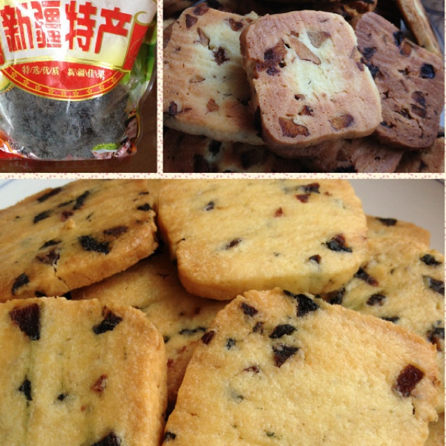 木有蔓越莓,用新疆什么梅代替的。第二盘放的红枣,烤糊了。