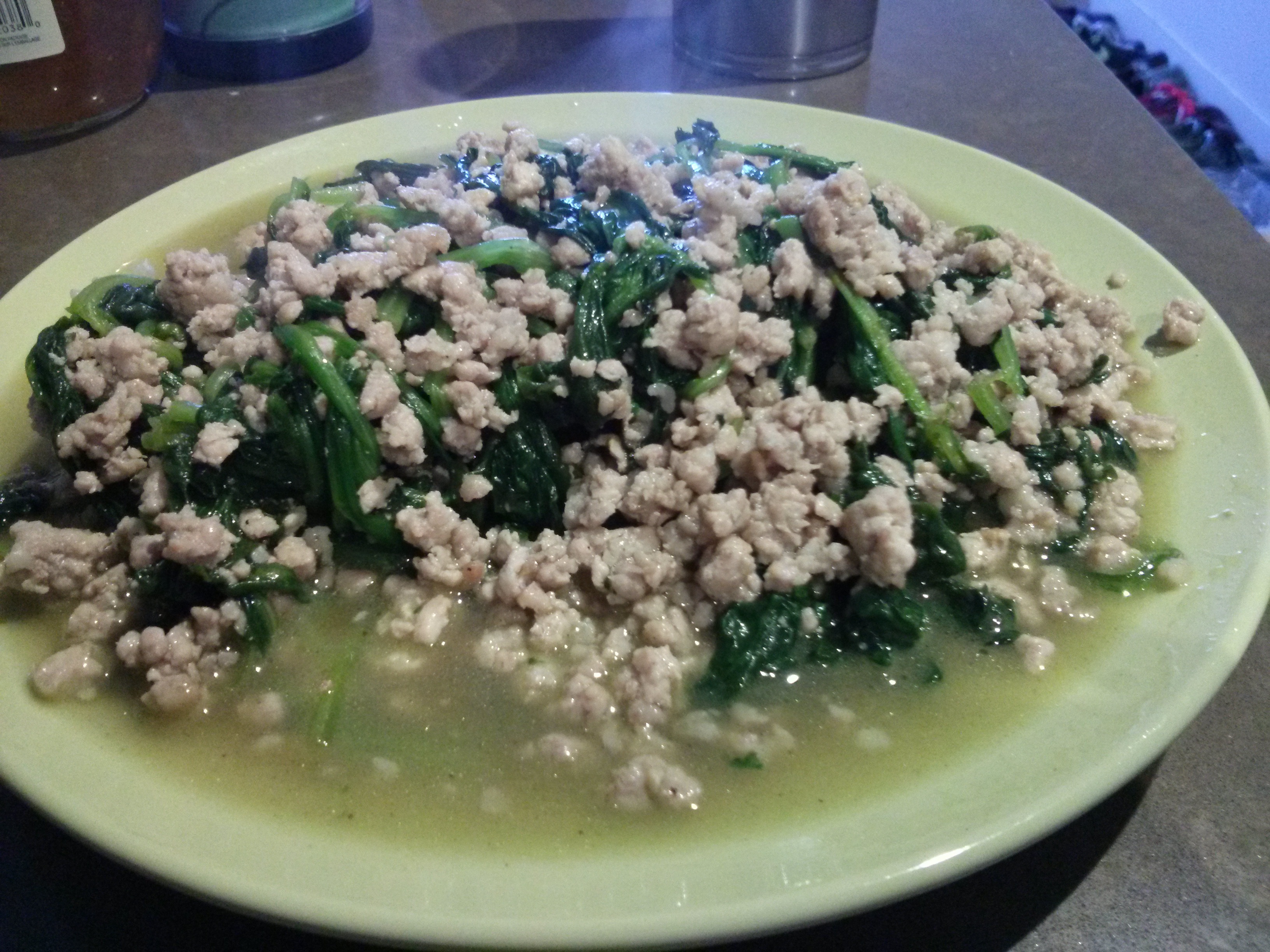 肉馅炒菠菜
